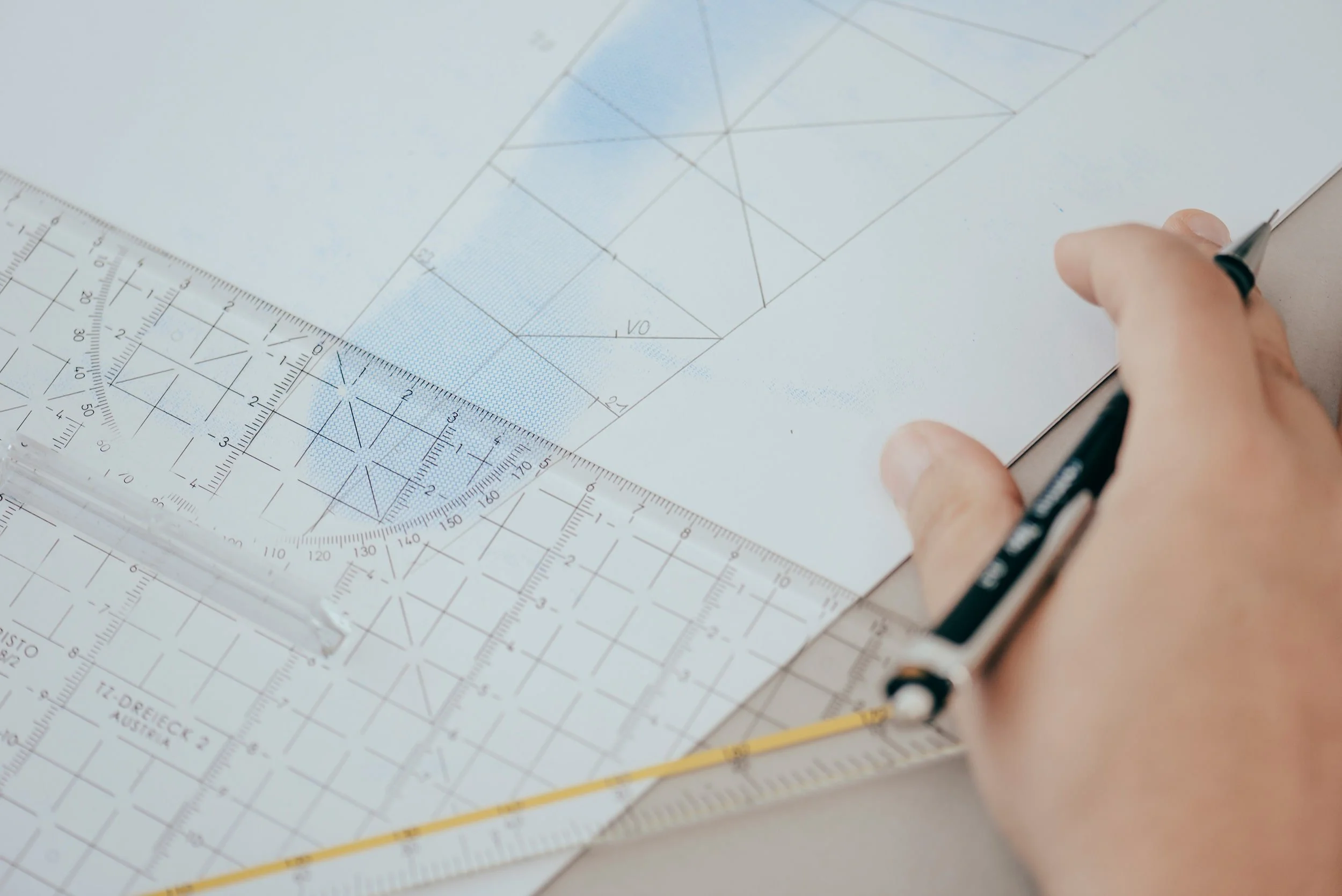 Geodreieck und Minenbleistift zum erlernen der Rechenmethode