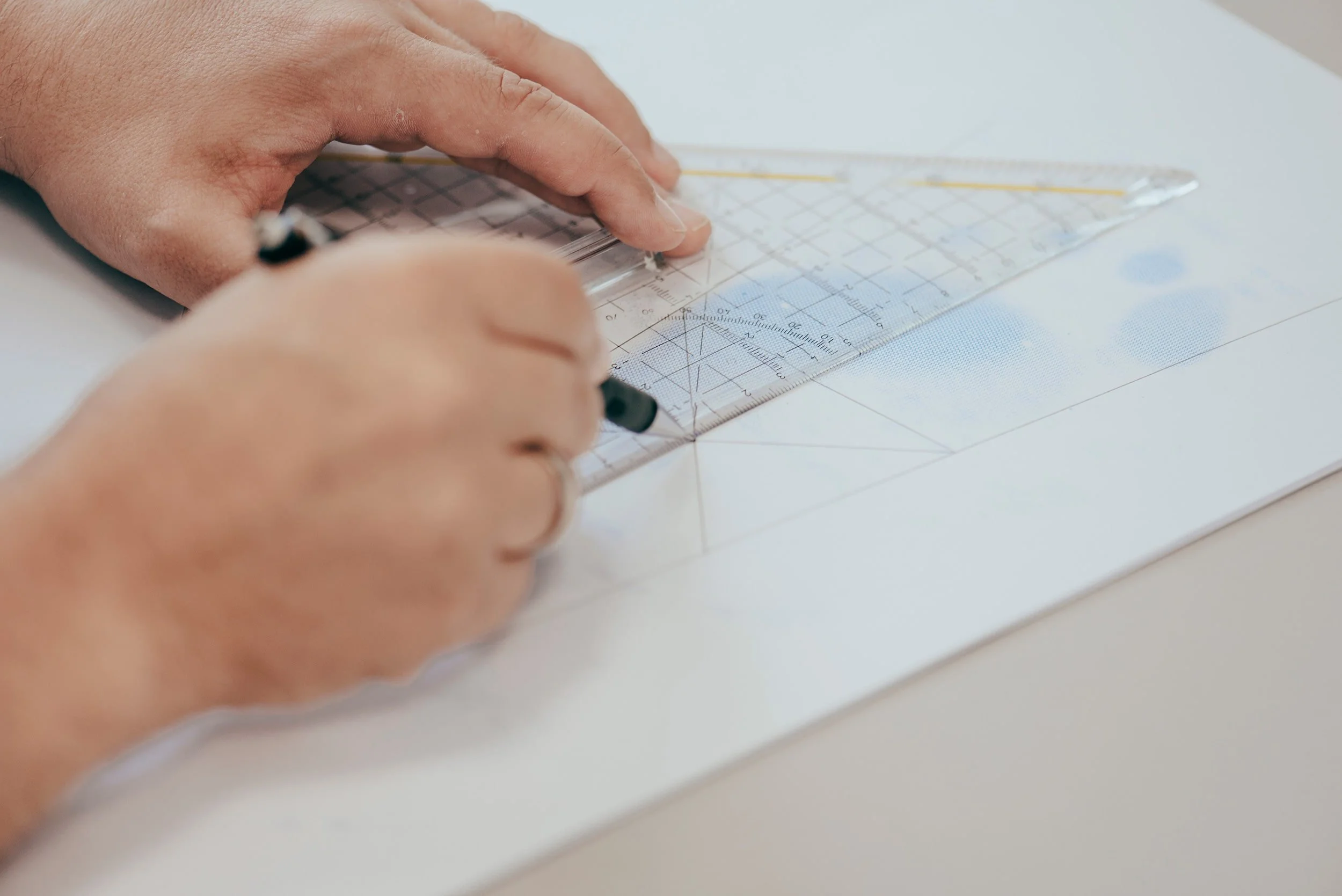 Geodreieck und Minenbleistift zum erlernen der Rechenmethode